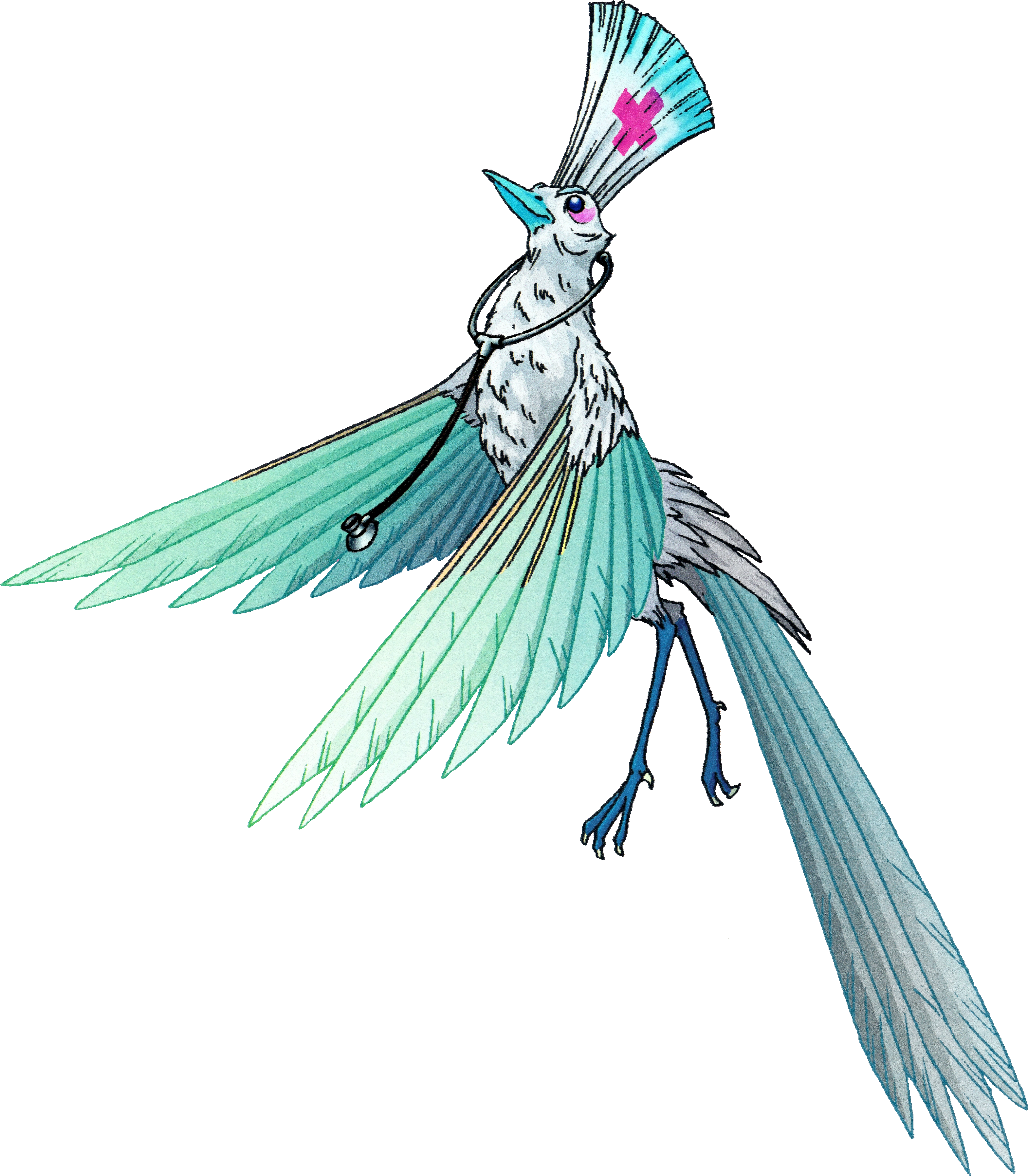 She has a bond with Caladrius. Since there are no 'formal' pictures of it (although the Shin Megami Tensei version of it is hilarious, I ended up making it look like giant fancy dove, but more the size of a young turkey. She'll be getting healing powers!